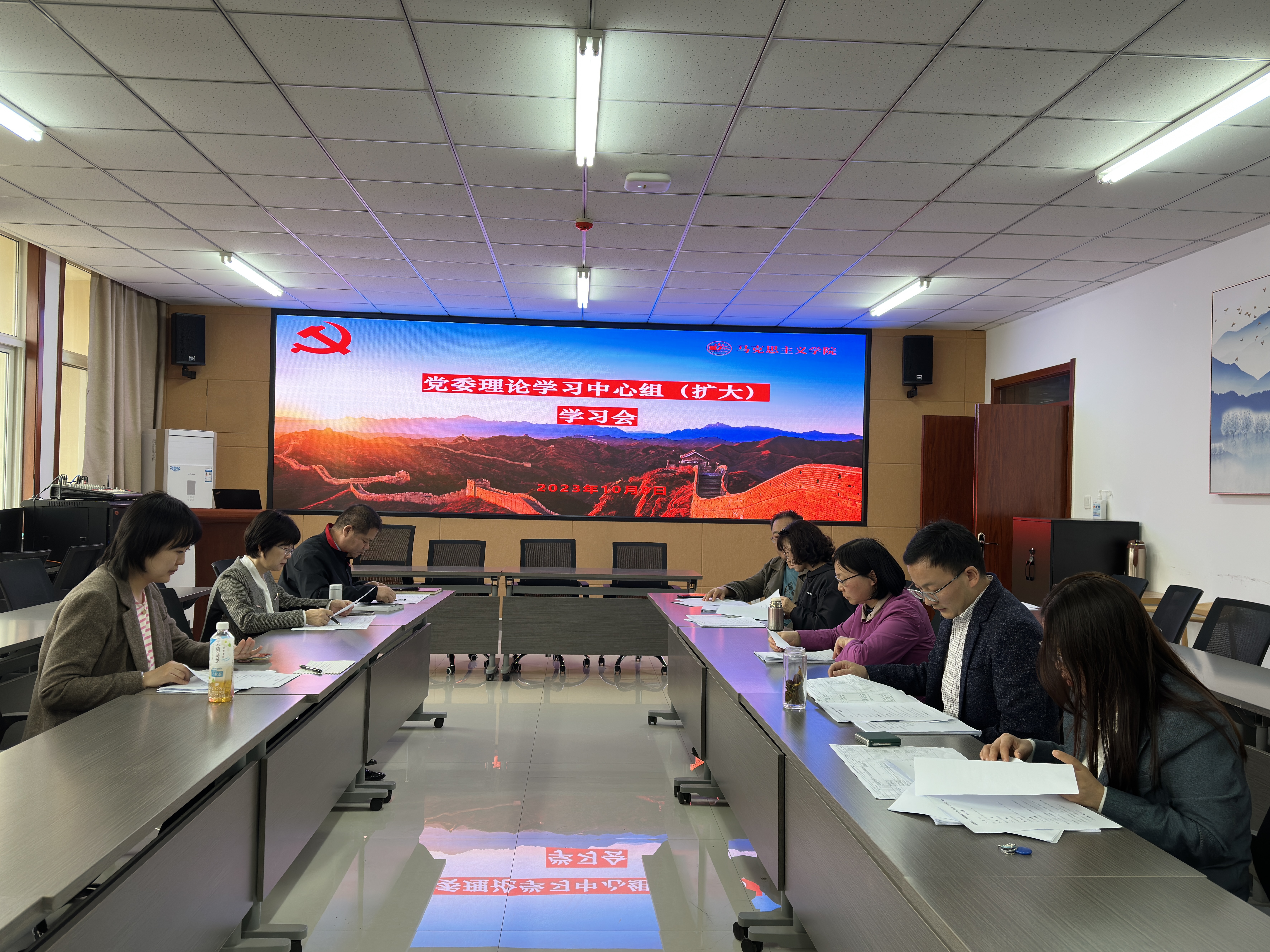 10月8日下午,明升M88 党委理论学习中心组(扩大)在诚意楼五层会议室召开学习会议。明升M88 领导班子、党委委员、科级干部和硕士研究生导师组长及部分教研室主任参加会议。会议由党委书记刘驰主持。