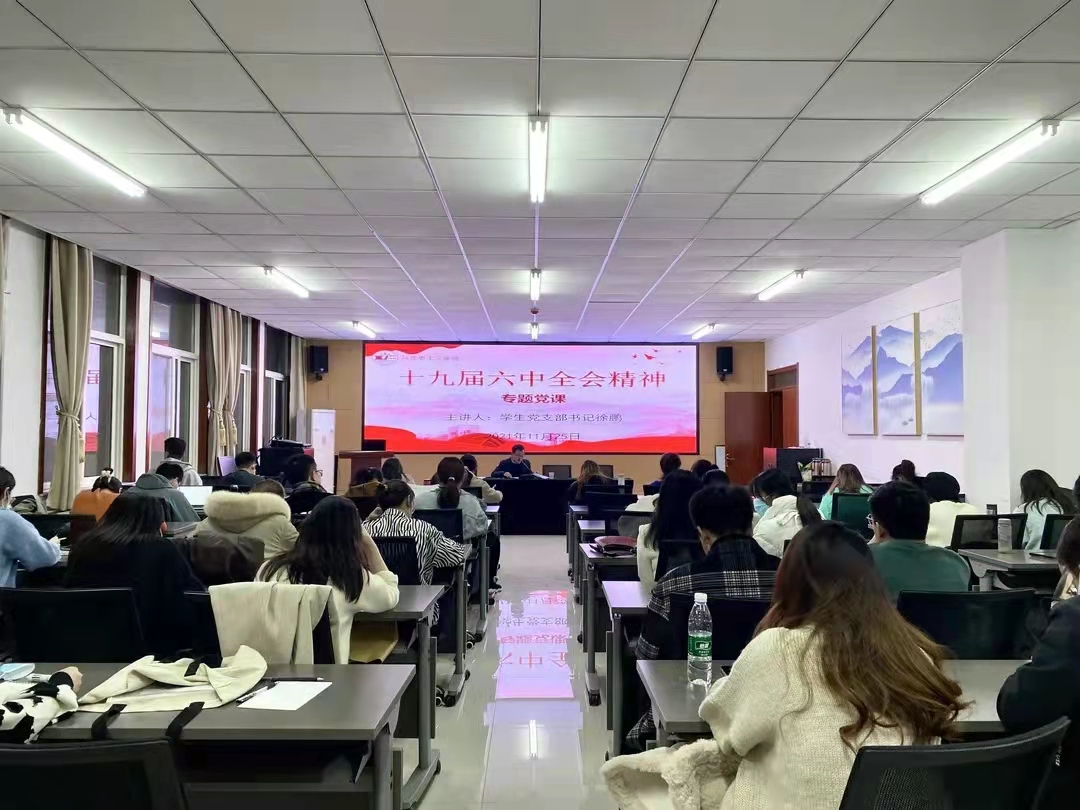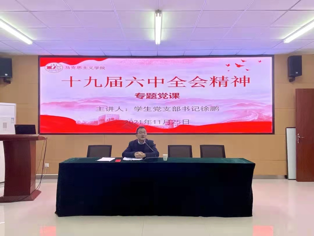 学生党支部书记徐鹏在长安校区诚意楼五楼会议室组织召开“学习党的十九届六中全会精神”专题党课,明升M88