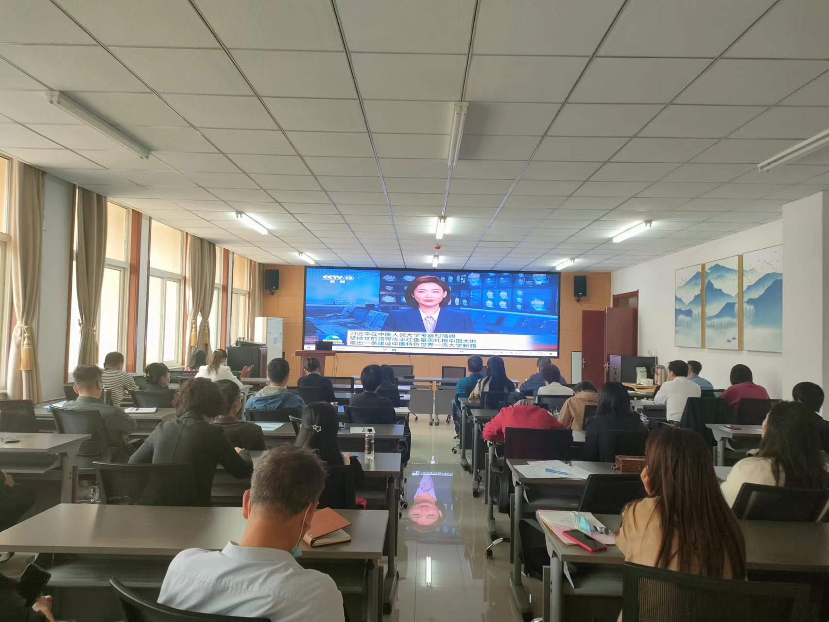 会上,大家集体观看和学习了习近平总书记在中国人民大学考察调研时的重要讲话新闻视频。刘驰全面传达了明升M88