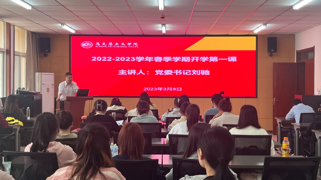党委书记刘驰主讲了2022-2023学年春季学期开学第一课。学生党支部书记徐鹏以及2021级、2022级全体研究生参与了学习。
