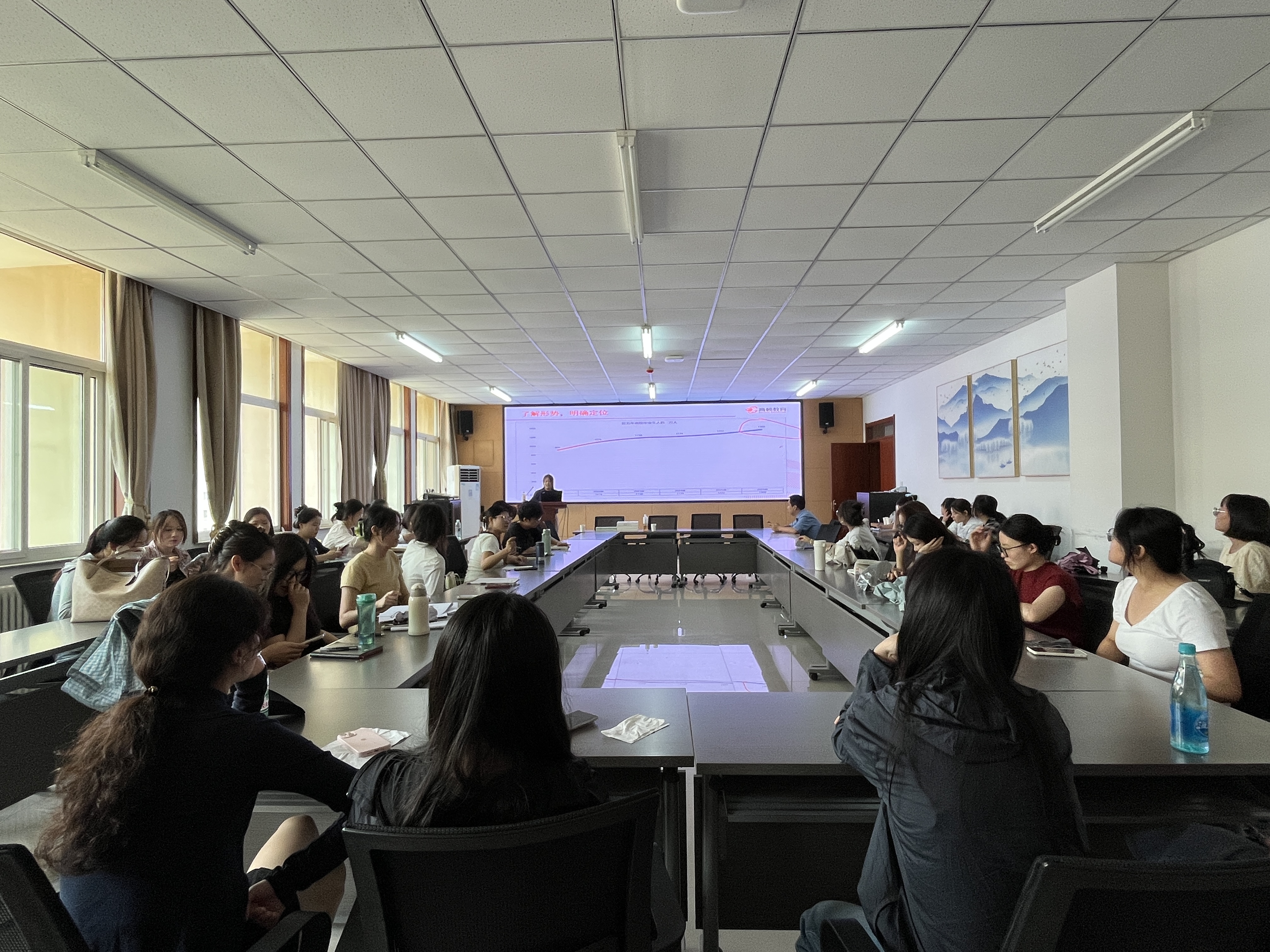 于诚意楼五楼会议室召开体制内就业指导备考讲座。本次讲座由高顿教育教师主讲,部分研究生参加。