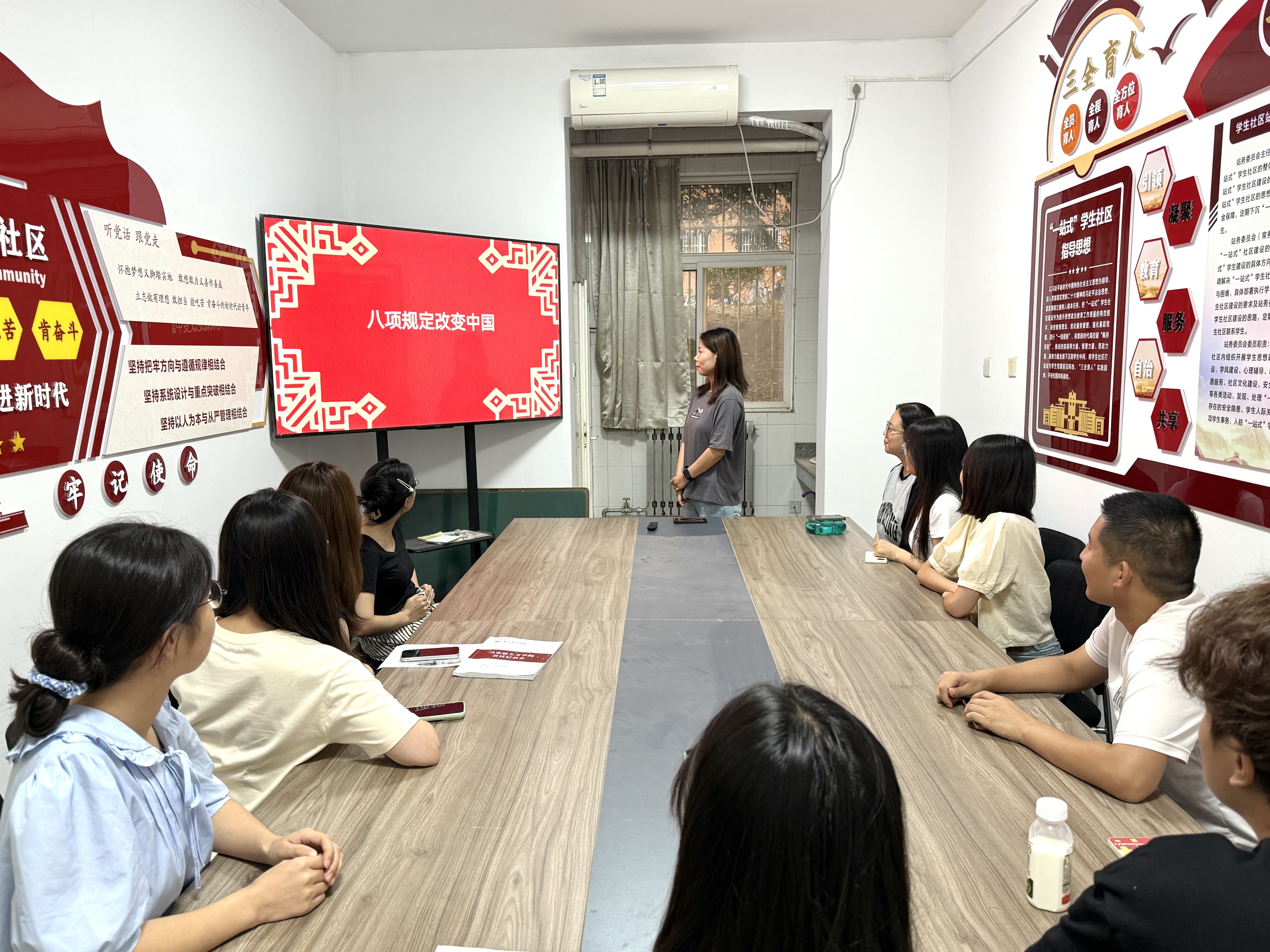 为推动深入贯彻中央八项规定精神学习教育走深走实,强化党员纪律意识,深化作风建设,6月25日晚,明升M88 学生党支部于11号公寓“一站式”学生社区开展“悟八规初心 践作风使命”主题党日活动。