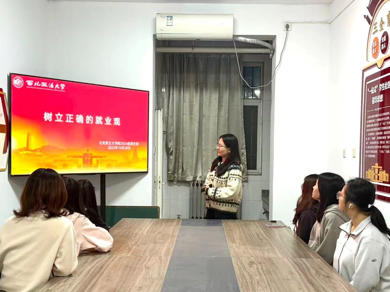 为引导广大团员认清就业形势,树立科学理性的就业观念,明升M88 2024级团支部于11号公寓“一站式”学生社区开展“树立正确的就业观”主题团日活动。本次活动由2024级团支书张睿怡主讲,全体共青团员参与。