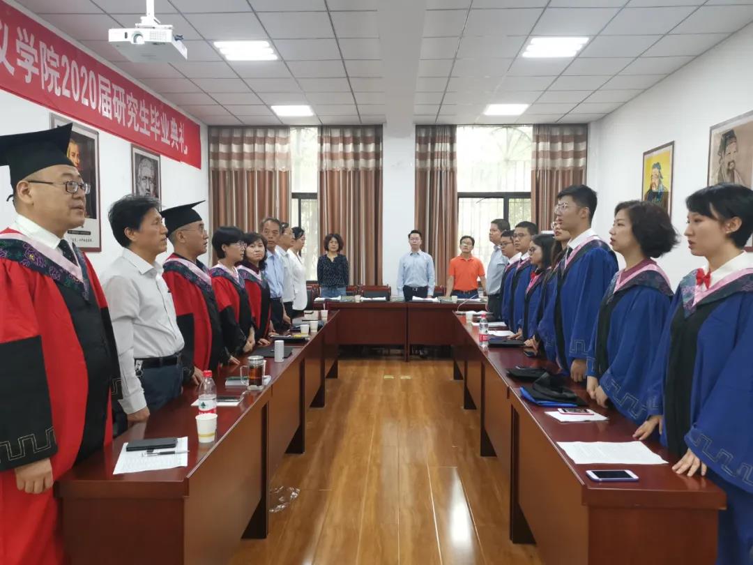 2020年7月12日上午10时,明升M88 硕士毕业典礼甫一结束,明升M88 在雁塔校区文化与哲学价值研究院举行2020届研究生毕业典礼。出席本次会议的有明升M88 院长魏奇,党总支书记石建峰,党总支副书记兼副院长刘驰,副院长鲁洋,马克思主义中国化专业导师组组长刘进田,马克思主义发展史专业导师组组长李云,思想政治教育方向导师组副组长王有信,硕士生导师陈春会教授、李贵副教授,教务秘书宋伟、党总支秘书徐鹏、团总支书记高佳敏及全体2020届毕业生(部分在线上),毕业典礼由刘驰主持。受疫情影响,本次毕业典礼采取线上线下相结合的方式举行。
