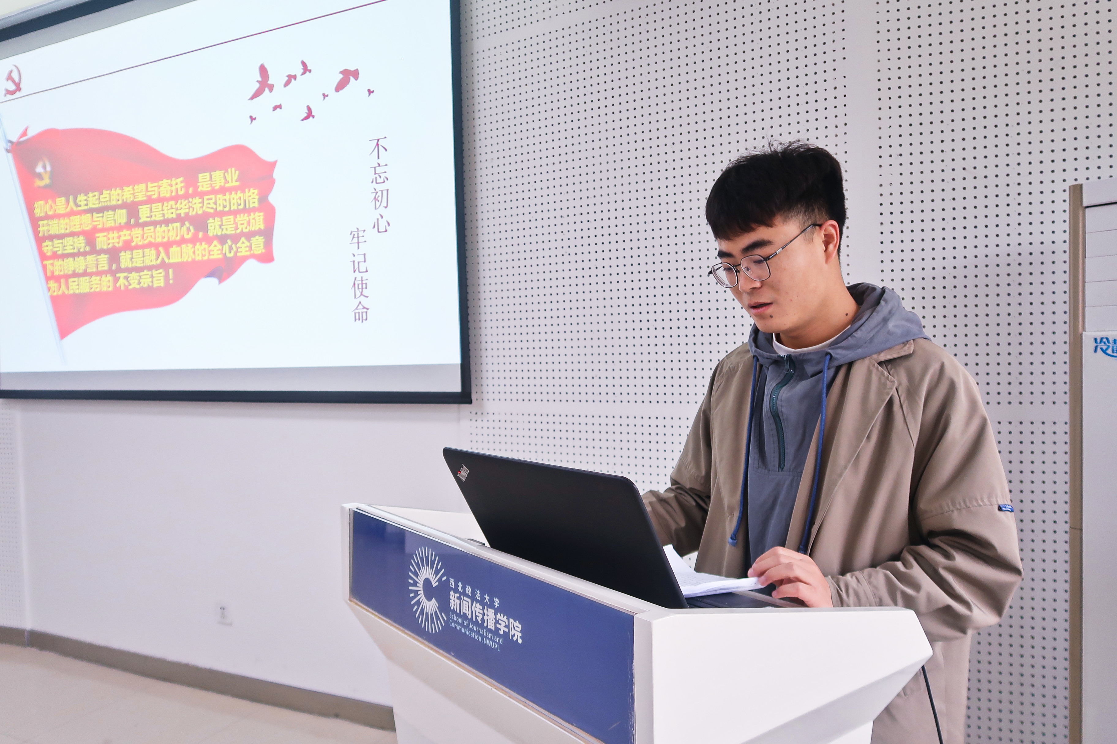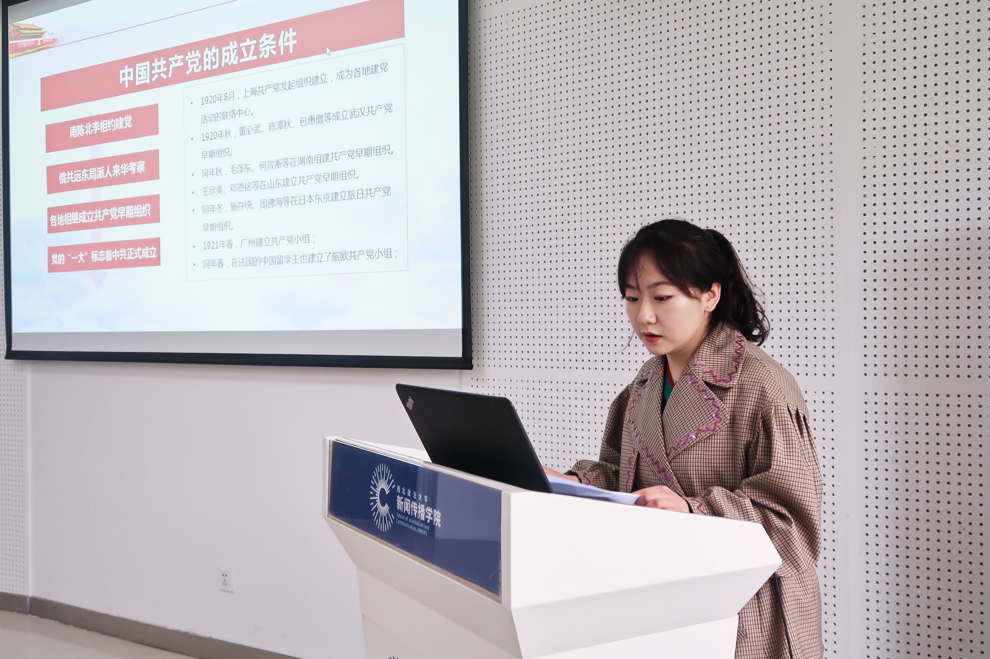 4月2日上午,明升M88 学生党支部、新闻传播明升M88 学生党支部和研究生党支部在明升M88 长安校区联合举行了“重温红色校史、讲述党史故事、争做时代新人”主题党日活动。明升M88 党总支组织员、学生党支部书记徐鹏,新闻传播明升M88 党委组织员张莉卓、新闻传播明升M88 学生党支部书记刘璇和两院学生党员共同参加了本次主题党日活动。
