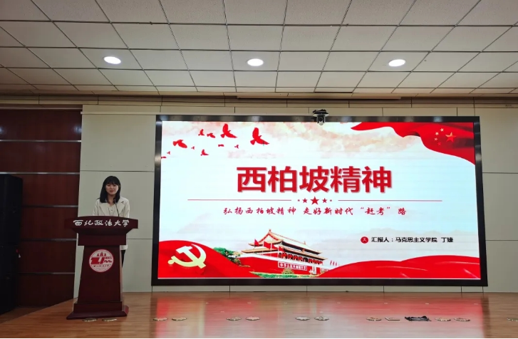 第二位宣讲人丁婕同学以“弘扬西柏坡精神 走好新时代‘赶考路’”为主题,通过走进西柏坡、西柏坡精神的内涵、如何继承和弘扬西柏坡精神以及西柏坡“赶考”精神的当代价值这四个方面带领同学们学习西柏坡精神。将理论与实际相结合,通过生动的小故事和视频,使得现场的同学们都充分感受到西柏坡精神背后深刻的内涵,了解到中国共产党全心全意为人民服务的根本宗旨。