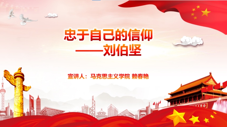 第三位宣讲人赖春艳同学以”忠于自己的信仰”为题,深刻解读中国共产党员刘伯坚同志在临死之际留下的珍贵遗墨,体味刘伯坚的精神气节。从刘伯坚不畏死亡、一心为国的精神和舍小家为大家的情怀出发,挖掘出无数革命先辈和共产党员忠于自己的信仰的精神气节,解锁中国共产党历经百年历久弥新的历史奥秘。