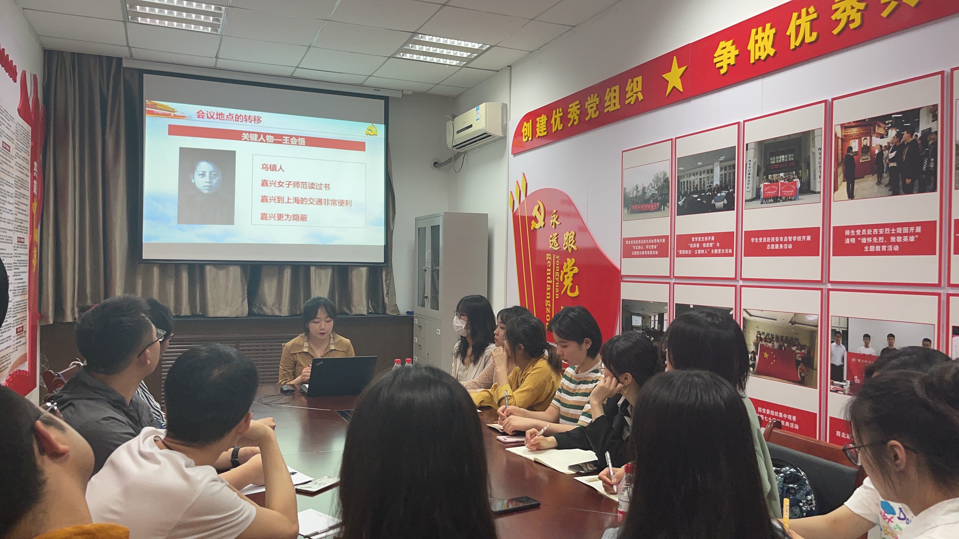 王心彤以“开天辟地的大事变”为主题,回顾了中国共产党百年征程的起点,以红船精神的深刻内涵为出发点,以中共一大为故事主线,向全体党员同志展示出我们党百年来优良的红色传统及时代意义。