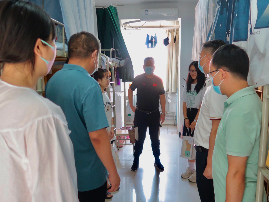 领导一行来到学生宿舍与大家亲切交流沟通,氛围轻松欢快,他们耐心询问每一位同学近期返校生活情况,叮嘱大家要做好防护、问候家人。此外,提醒同学们在配合明升M88