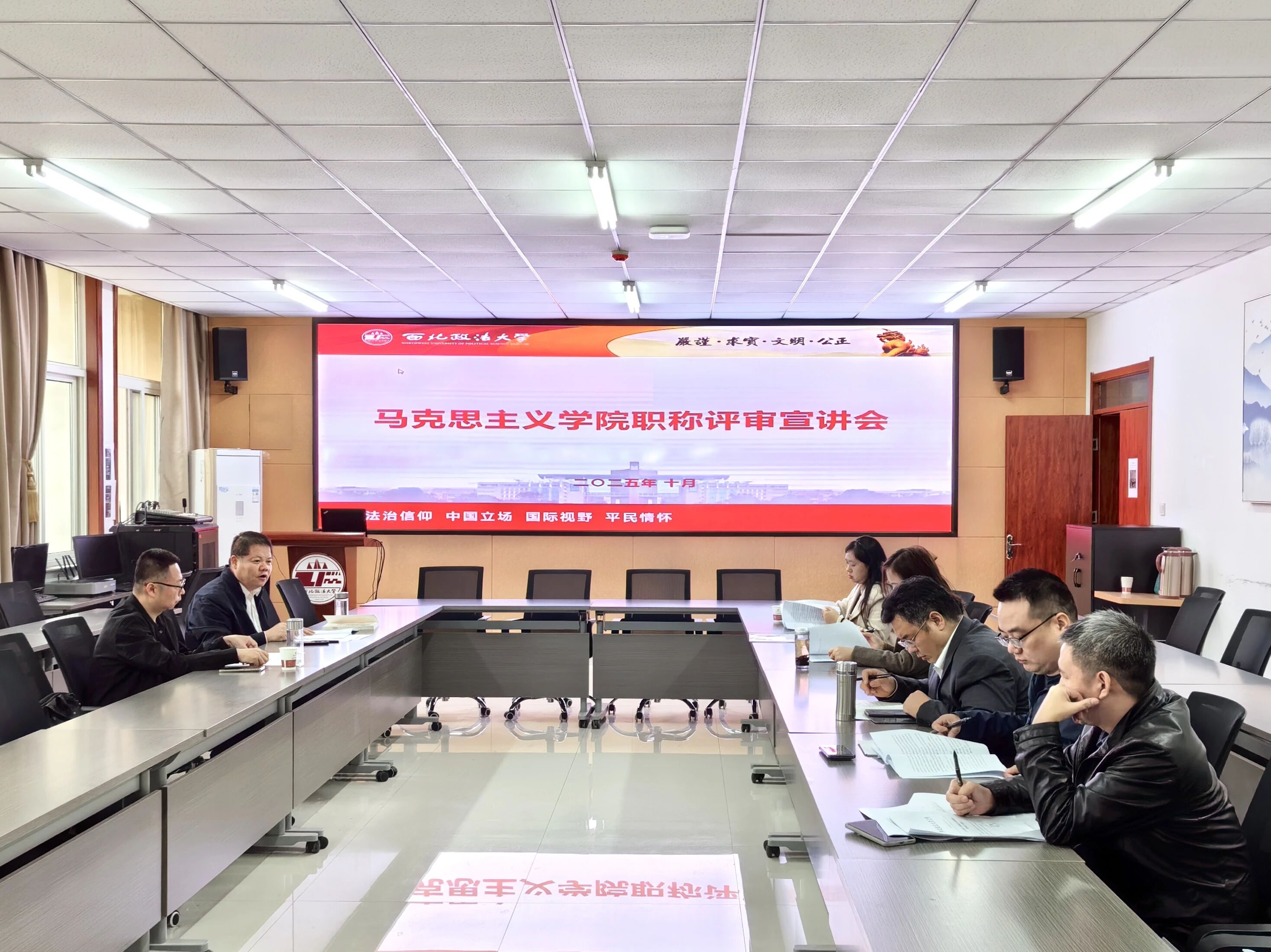 会上,赵琳详细传达了明升M88 本年度职称评审工作会议精神,领学了《关于开展2025年度教师系列职称评审工作的通知》及《明升M88 教师职称评审工作实施办法》等重要文件。参会老师围绕评审标准、申报流程与材料规范等问题进行了现场互动交流。