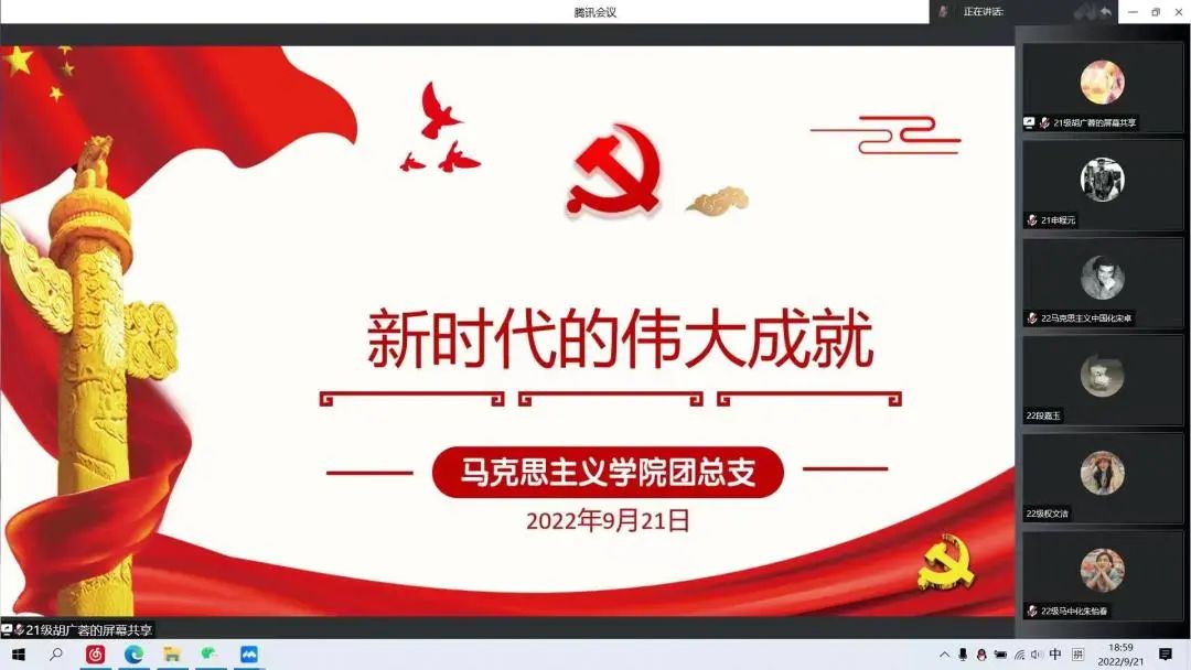 团总支于腾讯会议以线上方式开展“新时代的伟大成就”主题团日活动。活动由2021级团支部书记胡广蓉主持,明升M88