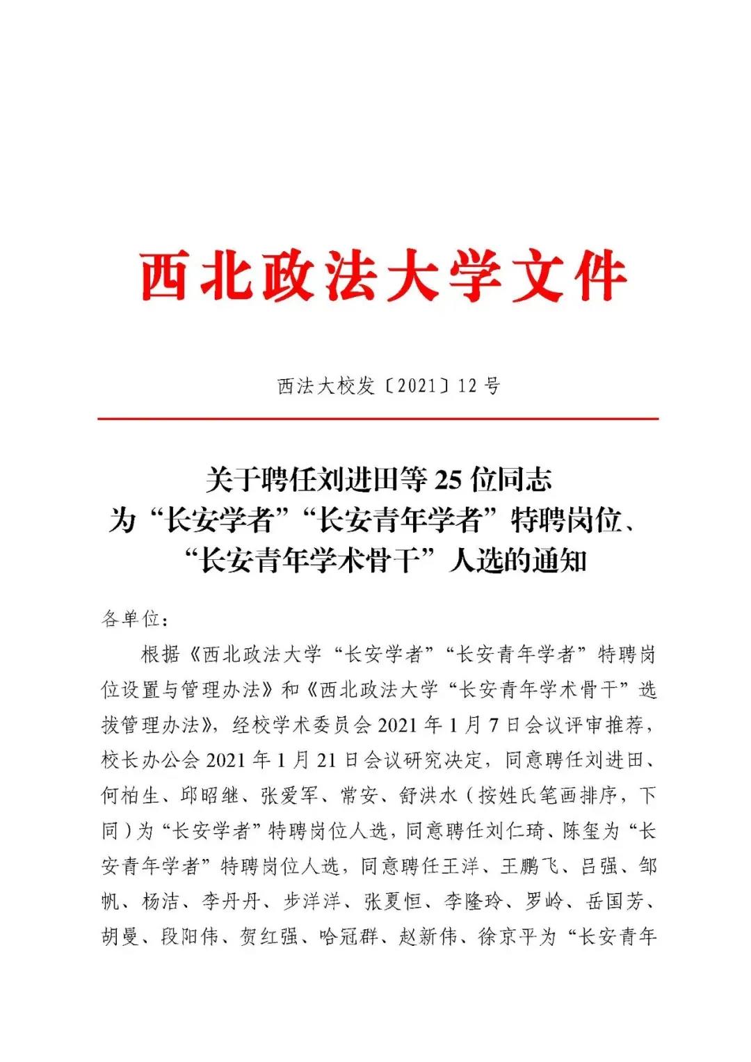 根据《明升M88 “长安青年学术骨干”选拔管理办法》,经个人申报,单位推荐,校学术委员会2021年1月7日会议评议推荐,校长办公会2021年1月21日会议研究决定,明升M88 刘进田教授获聘为“长安学者"特聘岗位人选,岳国芳副教授获聘为“长安青年学术骨干”人选。