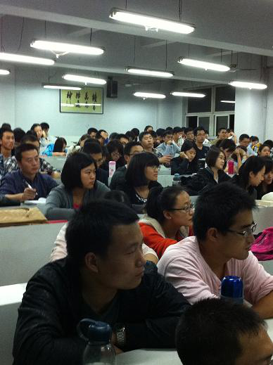 雁塔校区3号教学楼的3738教室里,学生们期待着79级校友李端先生的到来,期待听到李先生的报告。