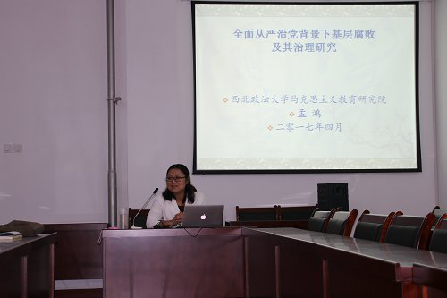 孟鸿副教授作“全面从严治党背景下基层腐败及其治理研究”的学术报告。