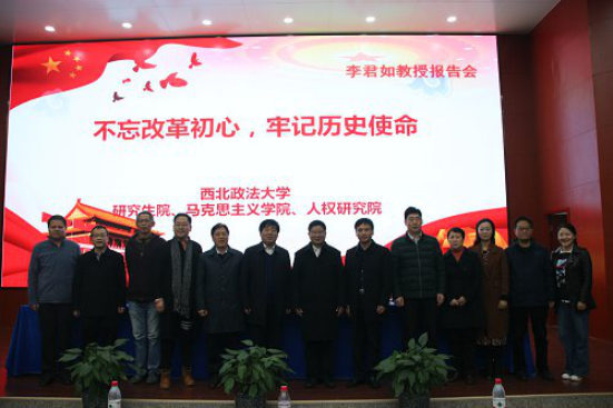 “改革开放四十年,成就辉煌新时代”,在隆重庆祝改革开放四十周年之际,明升M88 特邀请原中央党校副校长李君如教授开展了一场题为“不忘改革初心,牢记历史使命”的专题报告。本次活动由杨宗科校长主持,校纪委书记肖道远、部分党政领导出席。研究生院、明升M88 、人权研究院师生200多人参加了本次活动。