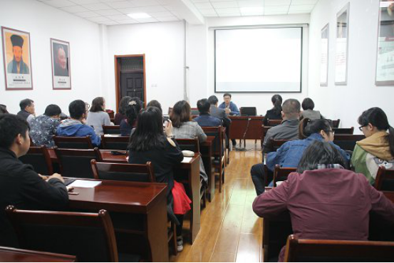2019年4月20日上午,明升M88 在文化价值研究院会议室举办了“思想政治理论前沿与学术表达”讲座,本次讲座由人民日报社《学术前沿》编辑部主任郑韶武主讲,明升M88 文化价值研究院院长刘进田教授主持了本次讲座。明升M88 约20余名师生参加了此次讲座。