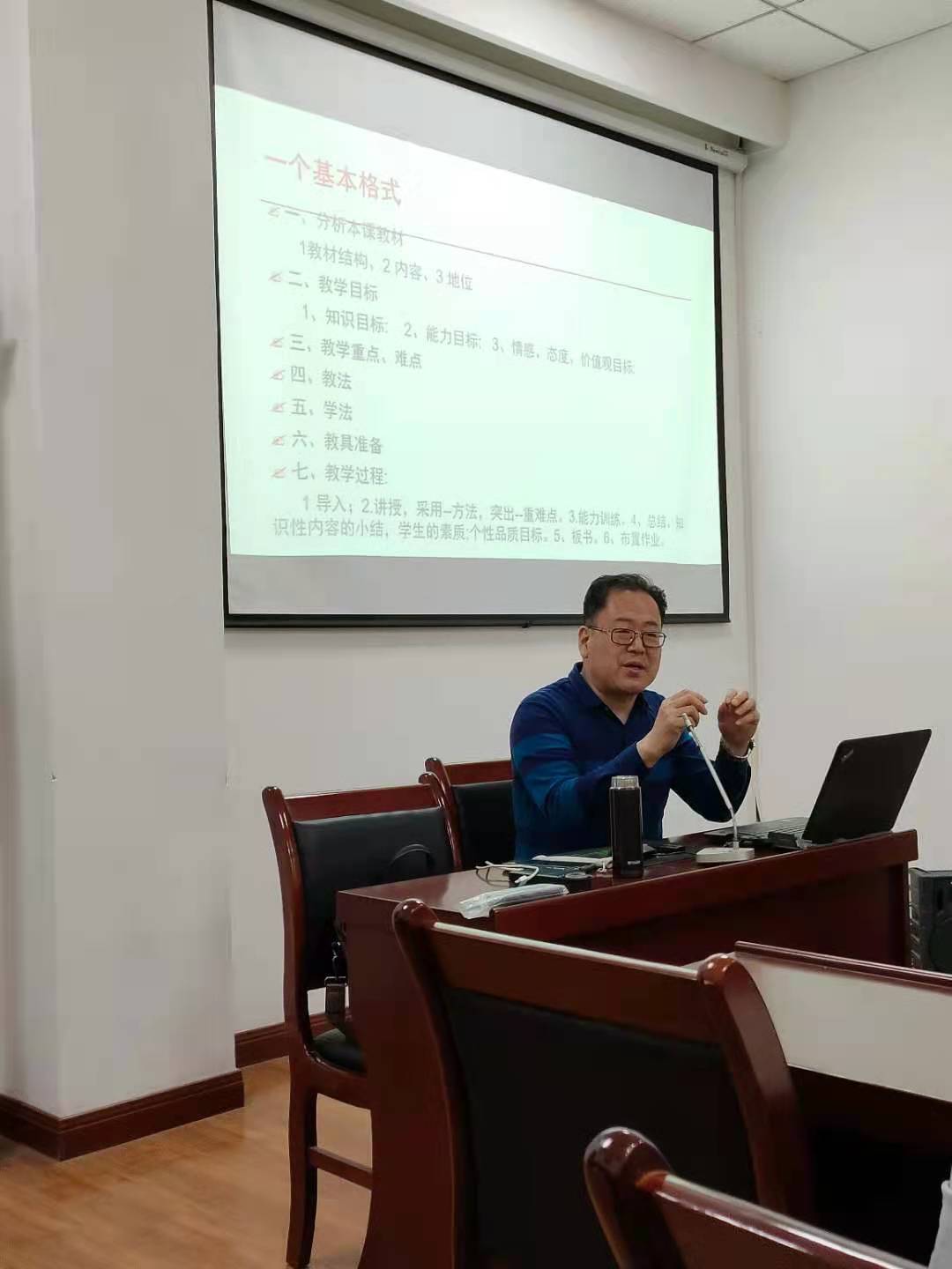 魏奇院长从“备学生、备教材、教学情景的创设、教学过程的构建、教学语言的优化”等几个方面为大家做了详细的讲解。备学生的三个方面分别是备学生的知识水平,备学生的身心特点,备学生的兴趣爱好;钻研教材、挖掘教材、利用教材是教学的首要任务,在立足教材、又不局限于教材的基础上,确立教学的目标、重点和难点;无论采取何种教学程序,都要有利于教学情境的创设,有利于问题的生成,有利于学生的自主、合作、探究学习,有利于活动的展开,有利于教学目标的达成。魏院长还对说课及其注意事项进行了重点讲解。