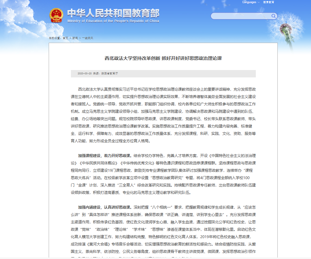 教育部网站报道明升M88 思政课教学改革创新工作