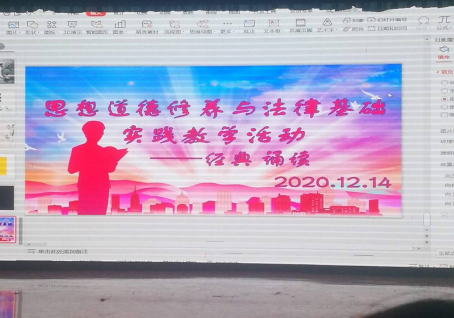 思想道德修养与法律基础教研室在长安校区AJ33教室组织开展了实践教学活动之一――经典诵读活动。本次活动由思想道德修养与法律基础教研室程仪容老师组织发起,思想道德修养与法律基础教研室主任李贵、王有信、相凯宇、徐鹏等老师和本学期开设《思想道德修养与法律基础》课程的五百余名学生代表参加了活动。