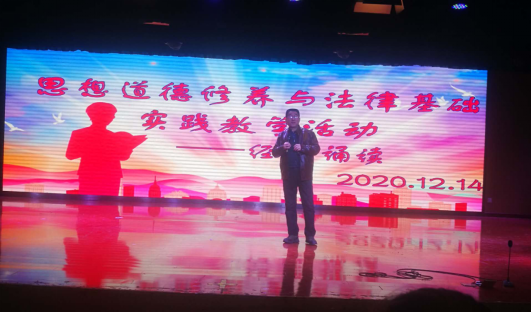王有信老师对诵读活动进行了精彩的点评。他表示,教育的意义在于传承,此次经典诵读活动集《思想道德修养与法律基础》课程实践教学、传承弘扬中华优秀传统文化活动为一体,使师生们受到一次深刻的教育。通过经典诵读,要熟知中国传统文化是社会主义先进文化的基础,更要懂得文化是民族之魂,只有文化自信才是道路自信、理论自信、制度自信的最根本的自信。整场活动高潮迭起,掌声不断,获得了现场师生的一致好评。
