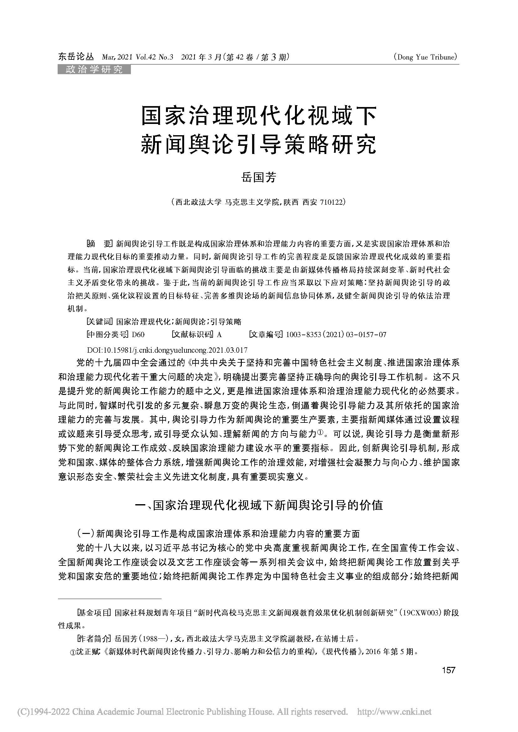 近日,陕西省教育厅公布了2024年陕西高校人文社会科学研究优秀成果获奖名单,明升M88 岳国芳副教授的论文《国家治理现代化视域下新闻舆论引导策略研究》荣获论文类三等奖。该论文发表于《东岳论丛》2021年第3期。