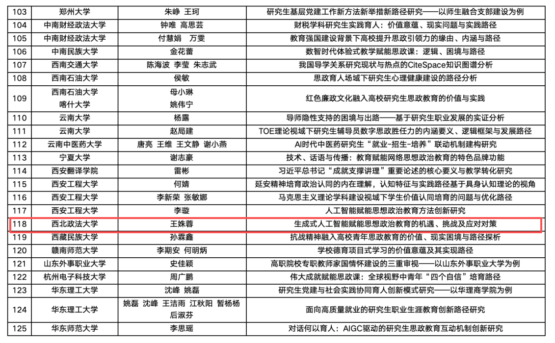 2024级硕士研究生王姝蓉撰写的论文《生成式人工智能赋能思想政治教育的机遇、挑战及应对对策》成功入选。