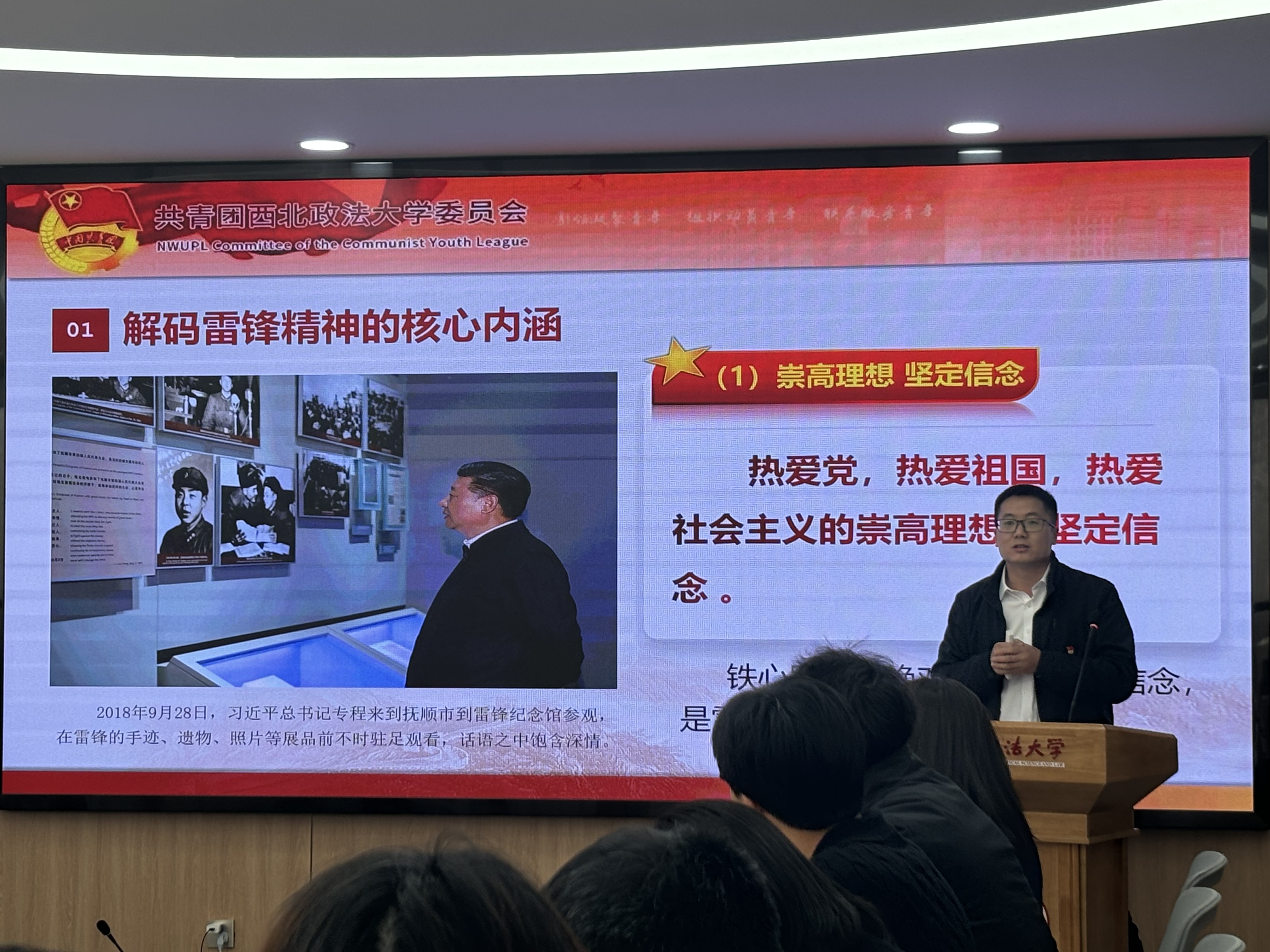 3月5日中午,明升M88 “学雷锋志愿服务月”启动仪式在一站式学生社区二楼习近平法治思想宣讲室正式启动,并将围绕雷锋精神开展特色思政育人实践活动。明升M88 王亮老师应邀主讲《寻找时空坐标中的那束光:新时代雷锋精神永放光芒》专题微团课。